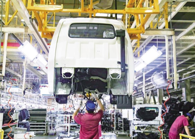 7月12日,工人在位于青州市的江淮汽车山东分公司流水线上生产作业。日前,中国汽车工业协会公布的数据显示▪▪,汽车行业已经走出4月份的最低谷,6月产销表现好于历史同期。王继林摄(经济日报7月14日8版)