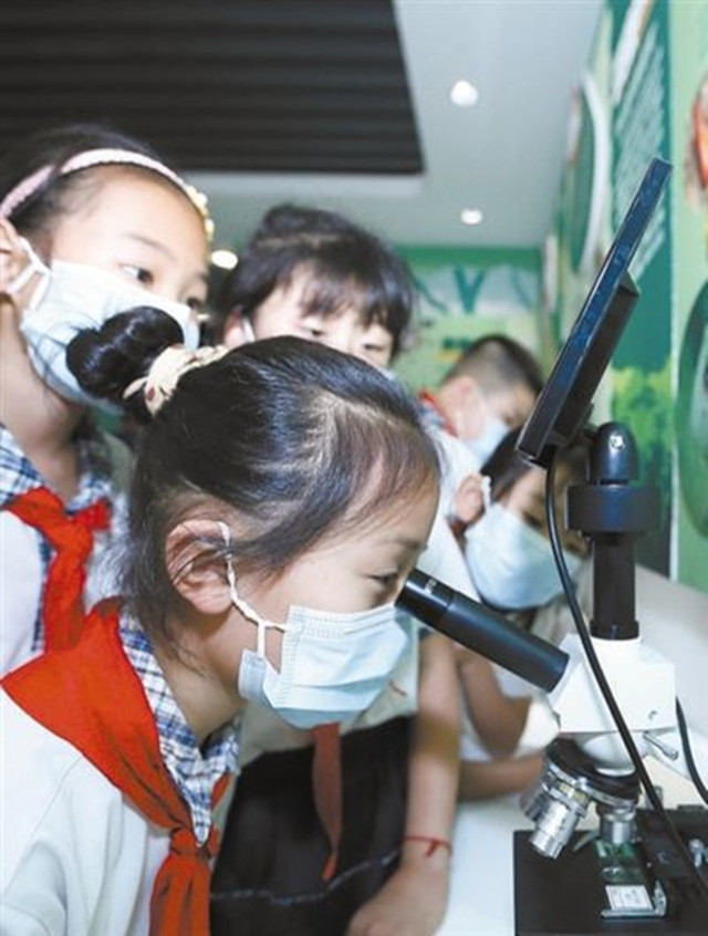 日前,青岛市莲花山小学组织学生来到中国农科院特种作物研究中心青岛试验基地-◇,开展“走进科普课堂 探索生物奥秘”主题教育活动■☆▼。孩子们参观了田园昆虫科普馆,聆听科普知识,参与趣味实验。这些活动有助于激发他们对科学的兴趣…▼▷,提高对保护生物多样性的认识○★☆。图为小学生在观察生物样本☆○。梁孝鹏摄 (人民日报7月11日19版)