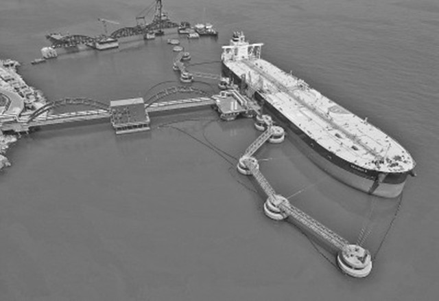 日前□▽△,山东港口烟台港原油管道复线(干线)正式启输。该项目从烟台港西港区出发,直达东营输油站,全长370余公里。该管道与原有的烟台至淄博长输管道形成“双管齐下”的新布局,输送能力由原来的每年2000万吨提升至4000万吨。图为7月8日,在烟台港西港区30万吨级原油码头□▪,一艘油轮通过原油管道卸油-▽。唐克摄(光明日报7月11日10版)